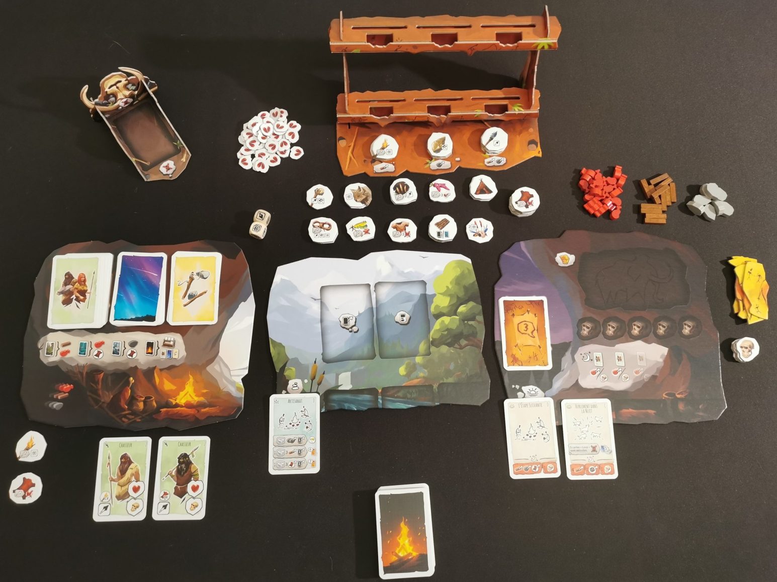 -:Mécanismes:Coopération ; -:Thèmes:PréhistoireNombre minimum de joueurs : 2 Nombre maximum de joueurs : 4 Age minimum : 10 Age maximum : 99 Durée moyenne (minutes) : 60 Principe du jeu : Dans Paleo, les joueurs vont décider collectivement de la répartition des tâches: exploration, mission, invention. Ce n'est qu'en arrivant dans un lieu que vous saurez vraiment ce qui vous y attend. Plus vous l'explorerez, plus vous disposerez d'informations, ce qui vous permettra de surmonter les obstacles que vous rencontrerez, grâce à des outils adéquats et grâce à l'aide de vos compagnons. Contenu :