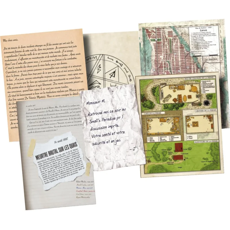1 farde dossier contenant les fiches de personnages pré tirés et/ou la possibilité d'en créer de nouveaux, des cartes et documents pour le maître du jeu pour aider dans les scénarios.Exemplaires (1)