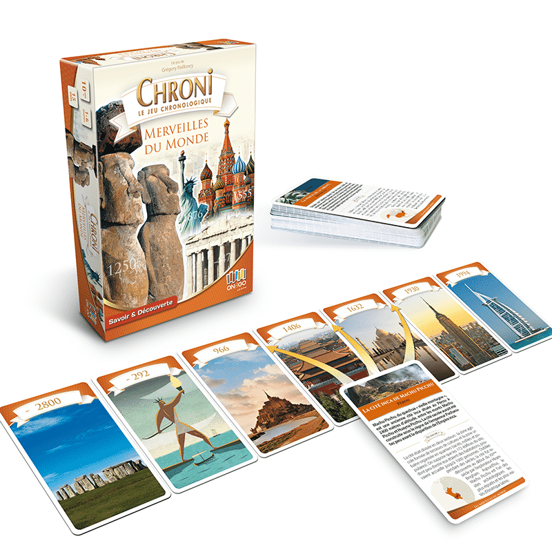 Titre : Chroni : Les merveilles du monde Type de document : objet à 3 dimensions, artefacts, ... Auteurs : Grégory Pailloncy, Auteur Editeur : On the Go Editions Catégories : Mots clés